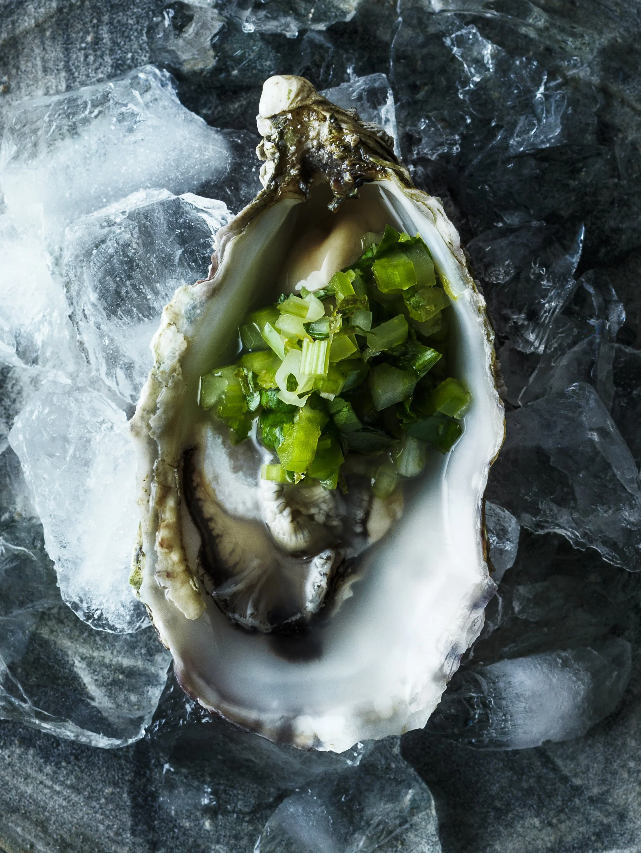 De vackra delikatesserna äts ofta naturella eller med några droppar citron, men för den nyfikna väntar den mest fantastiska smakexplosionen här: ostronets milda sälta från havet i kombination med jalapeñons hetta, sellerins krispighet och limens syrliga sötma.